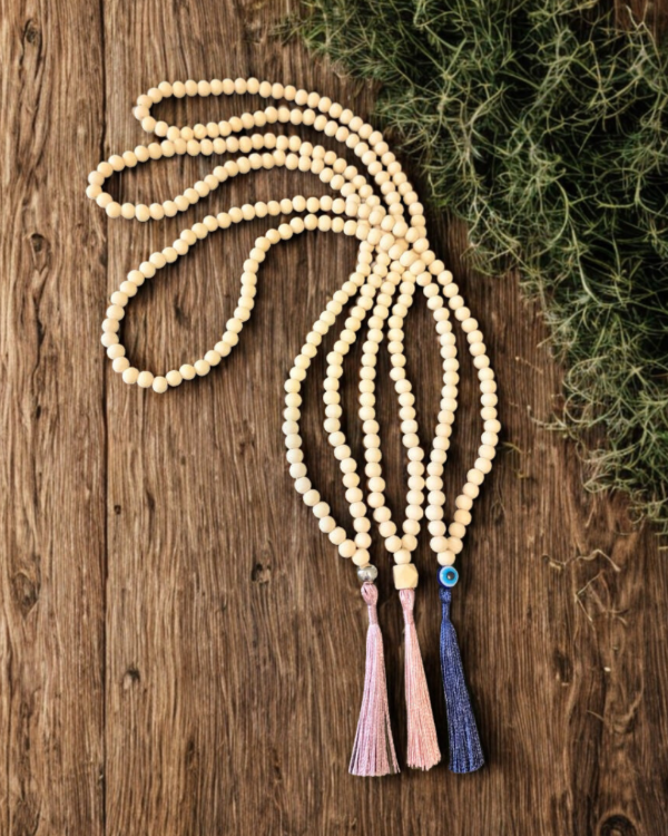 Cada japamala está elaborado a mano con cuentas de madera natural, pensado como una herramienta energética y meditativa para acompañarte en tus prácticas diarias o terapias.